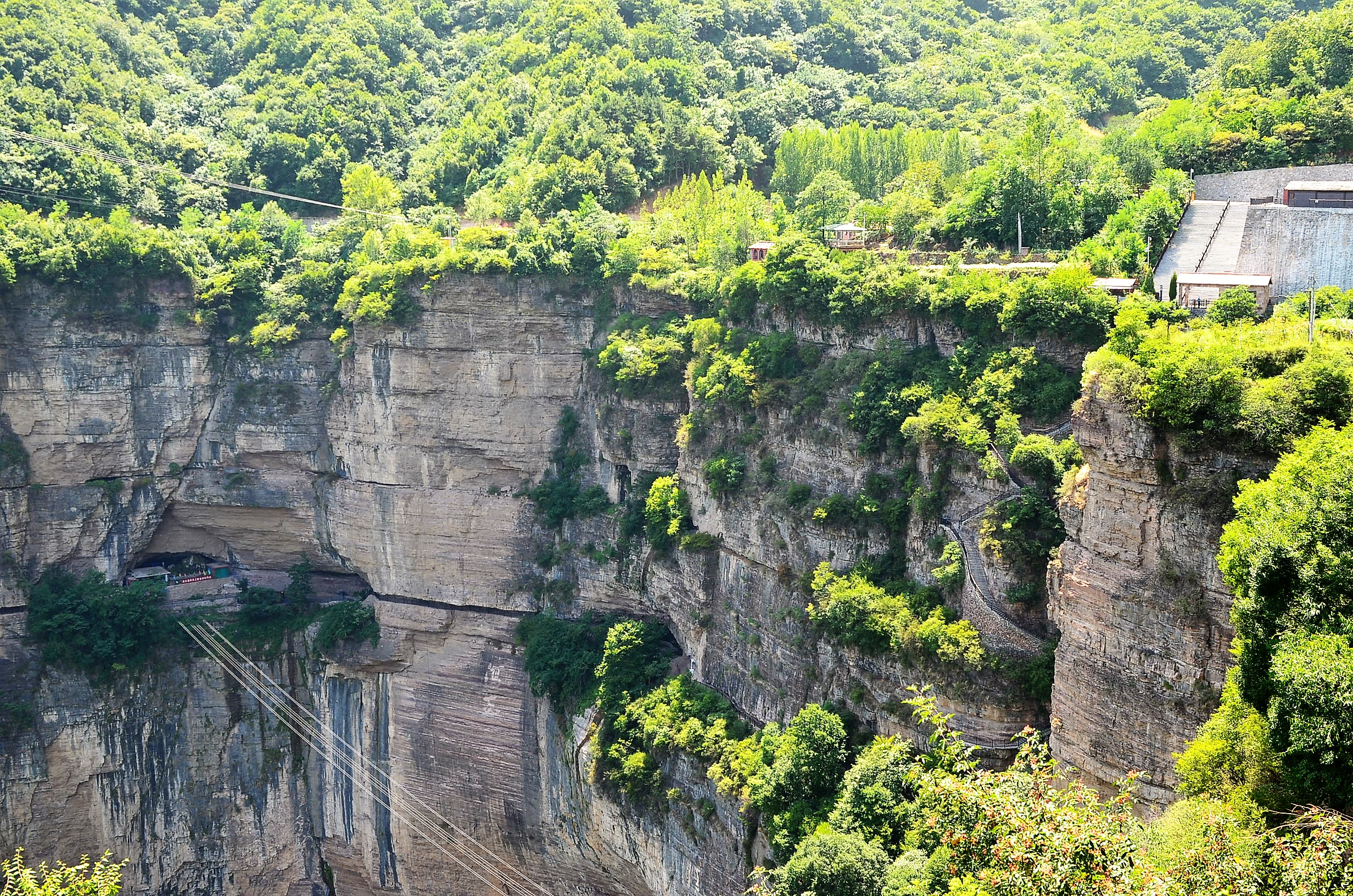 절벽 아래에 조성된 통로로 오릅니다