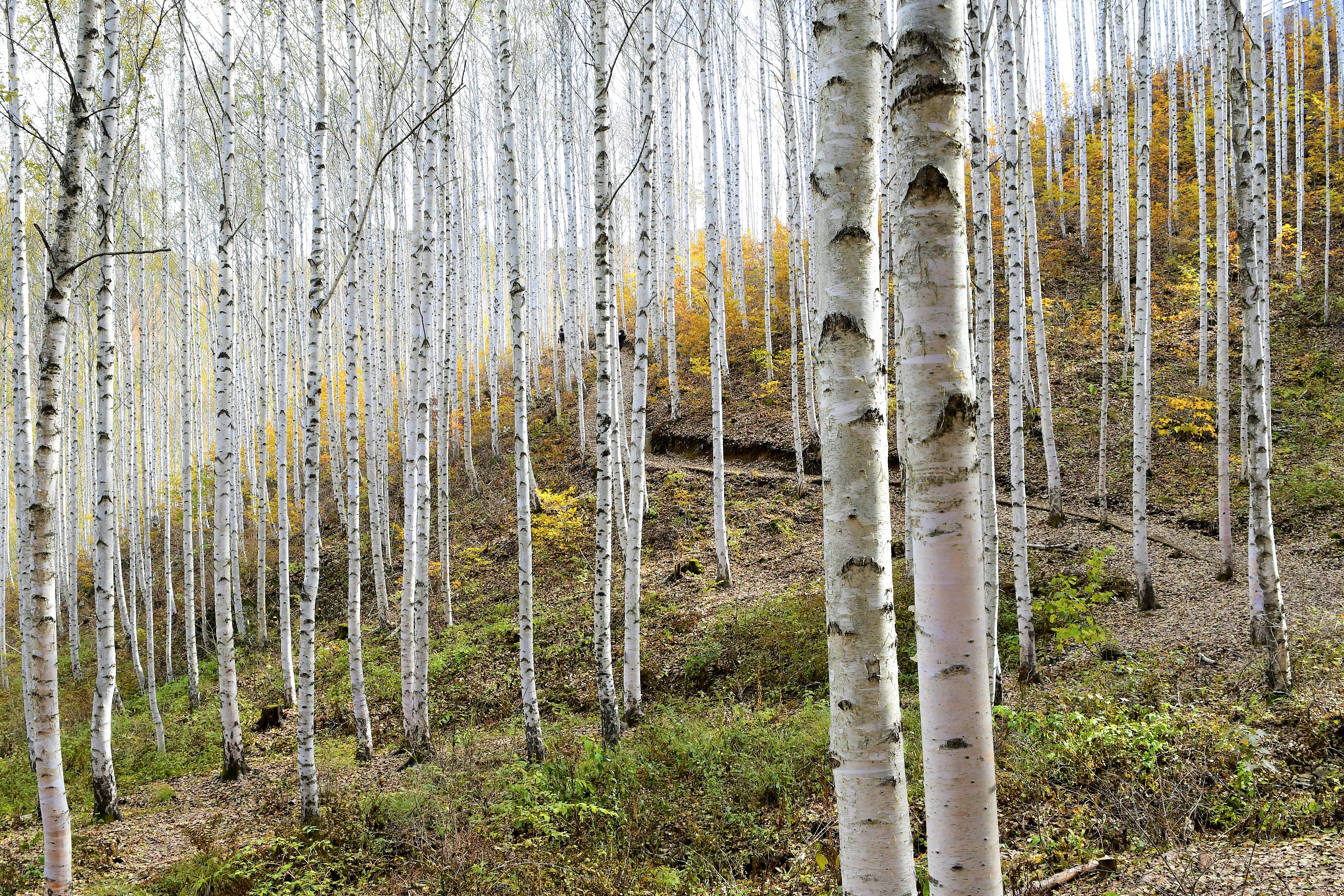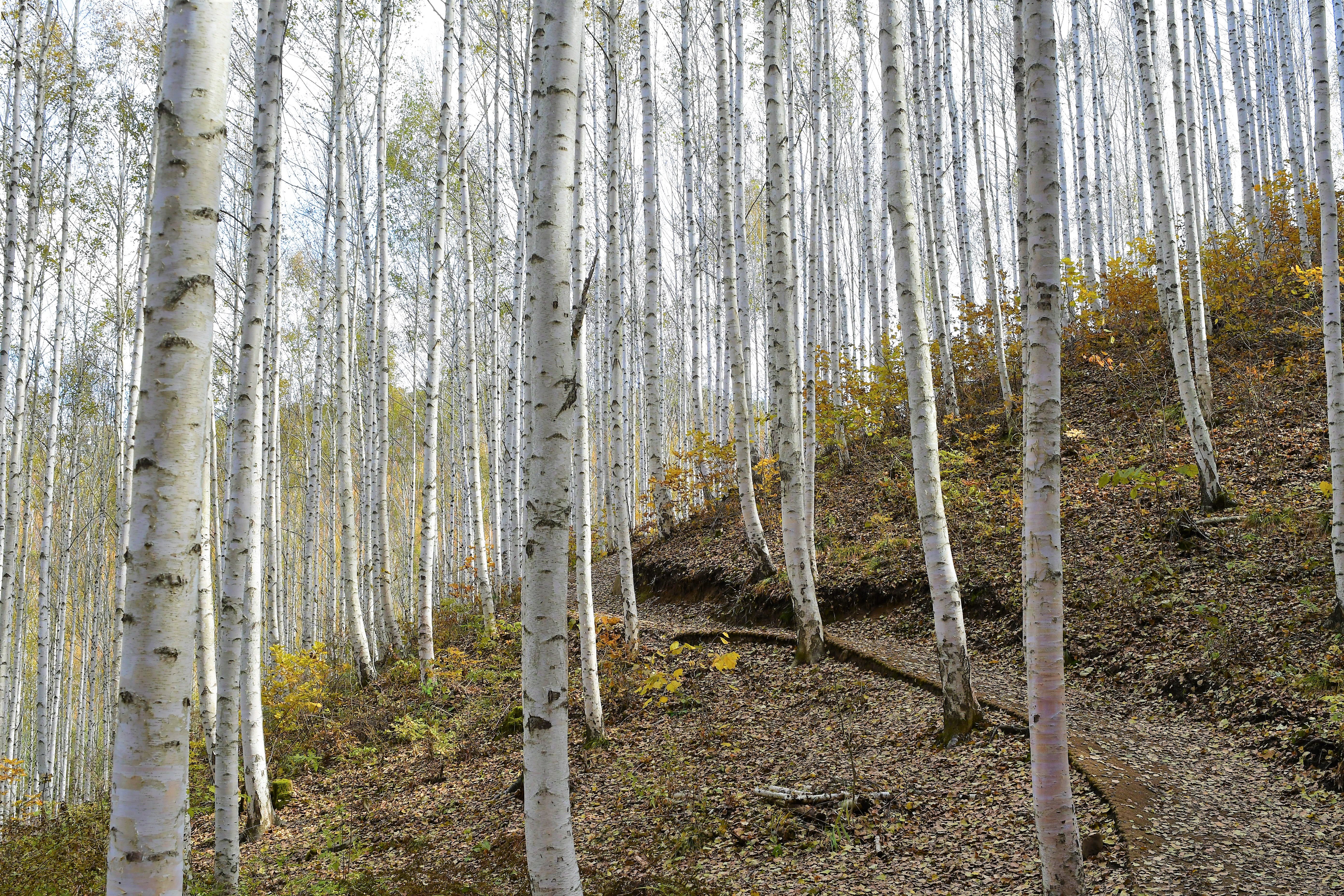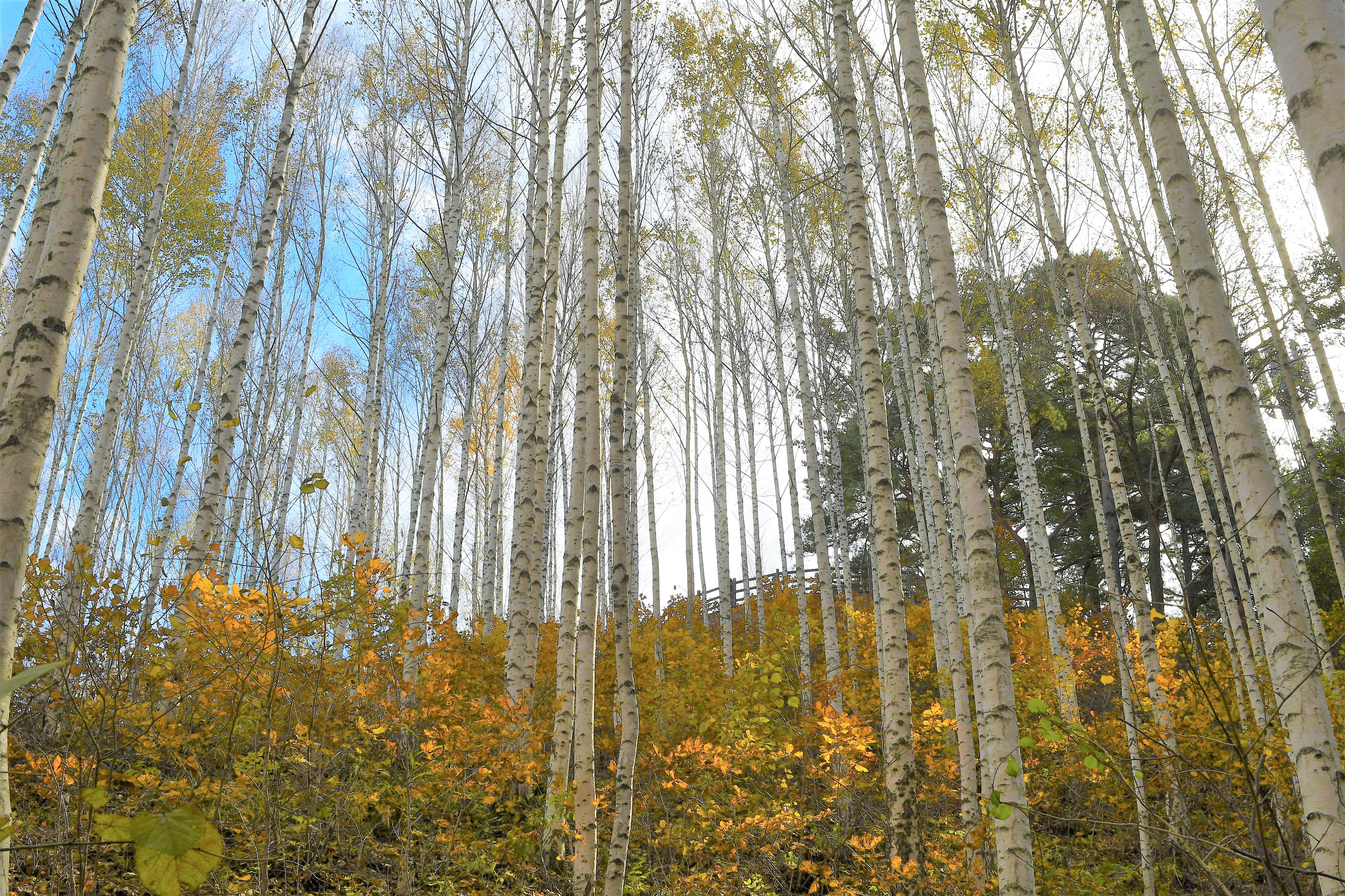 힌색의 자작나무,,, 그리고 듬성듬성의 나무들,,,
