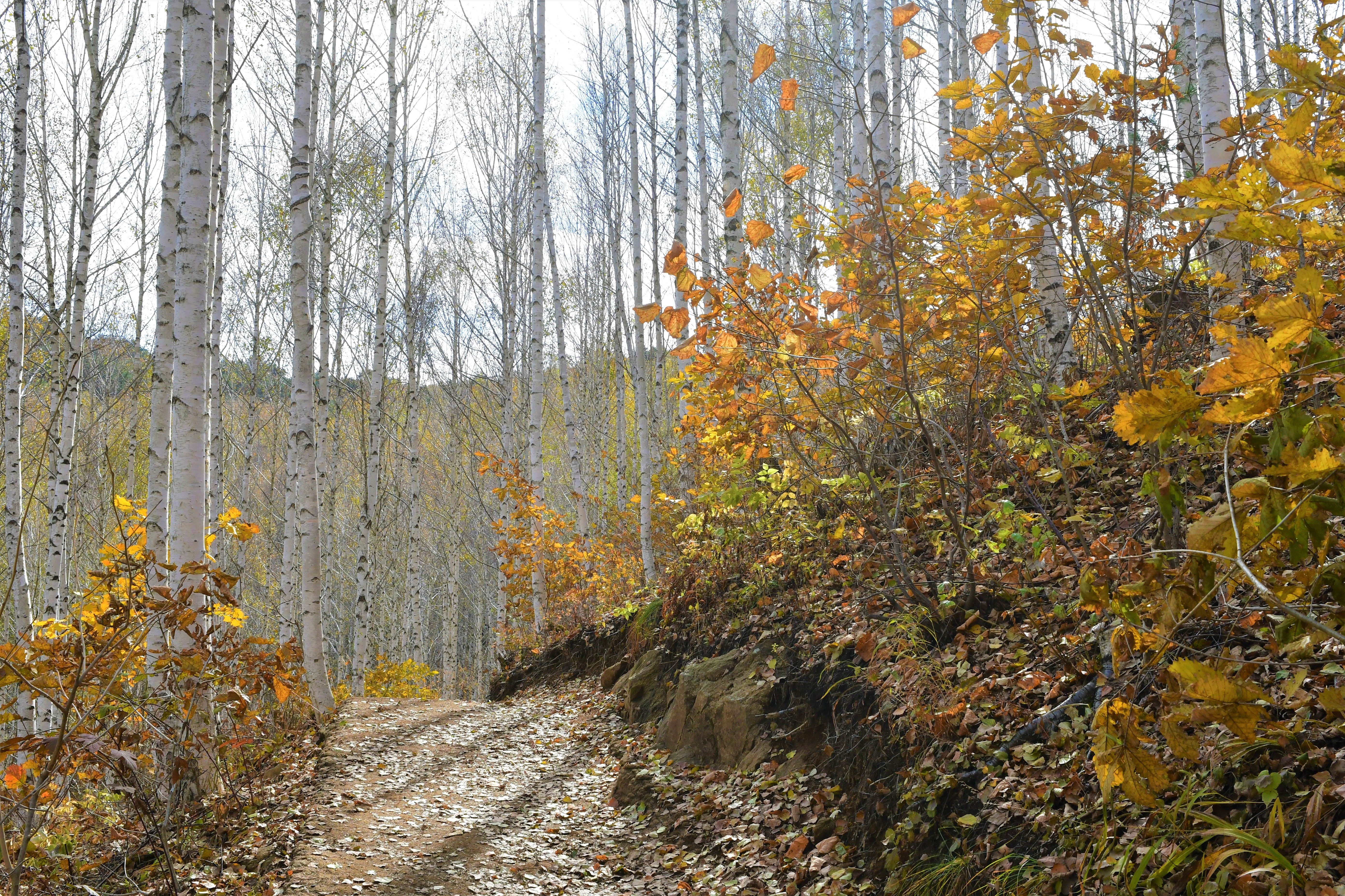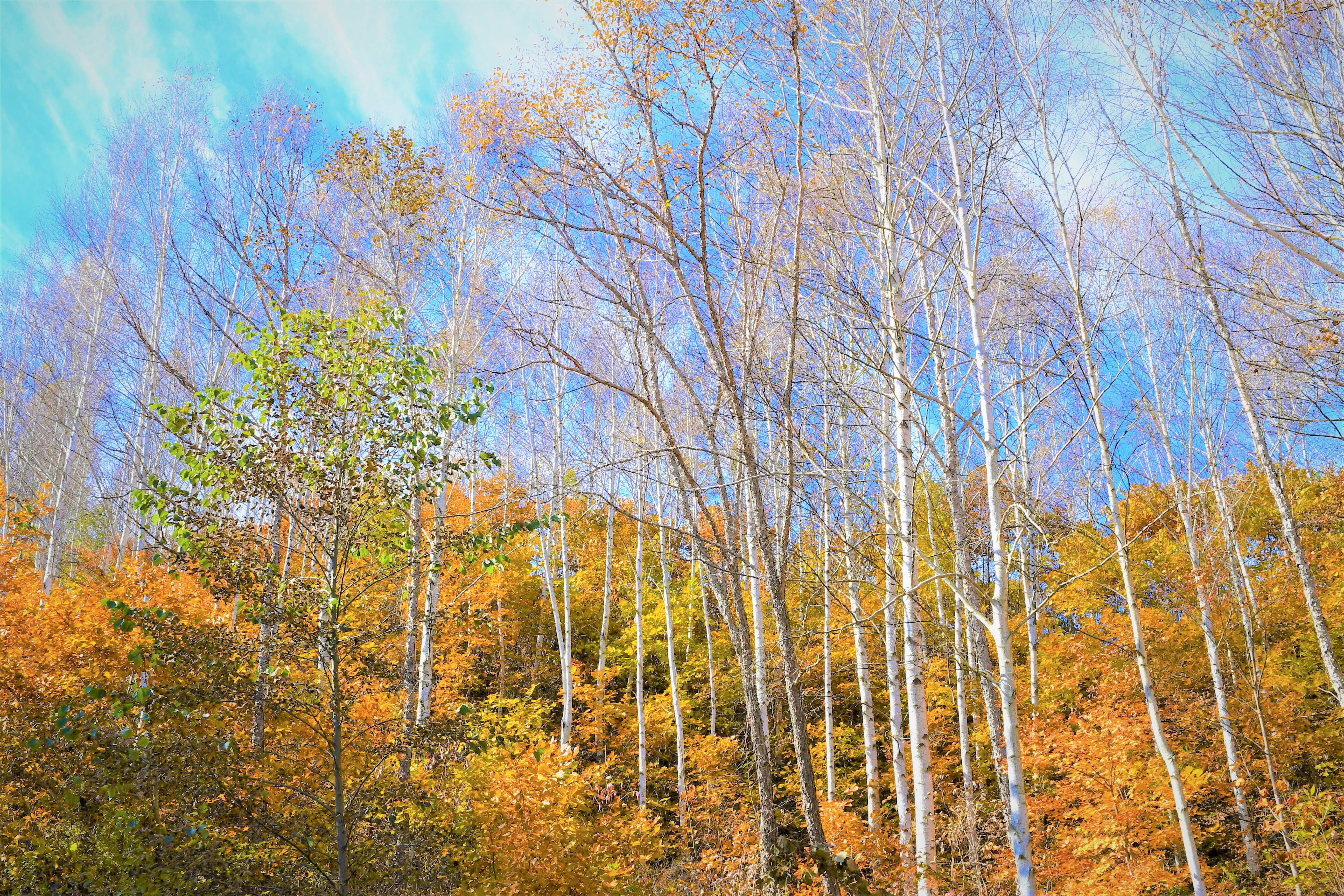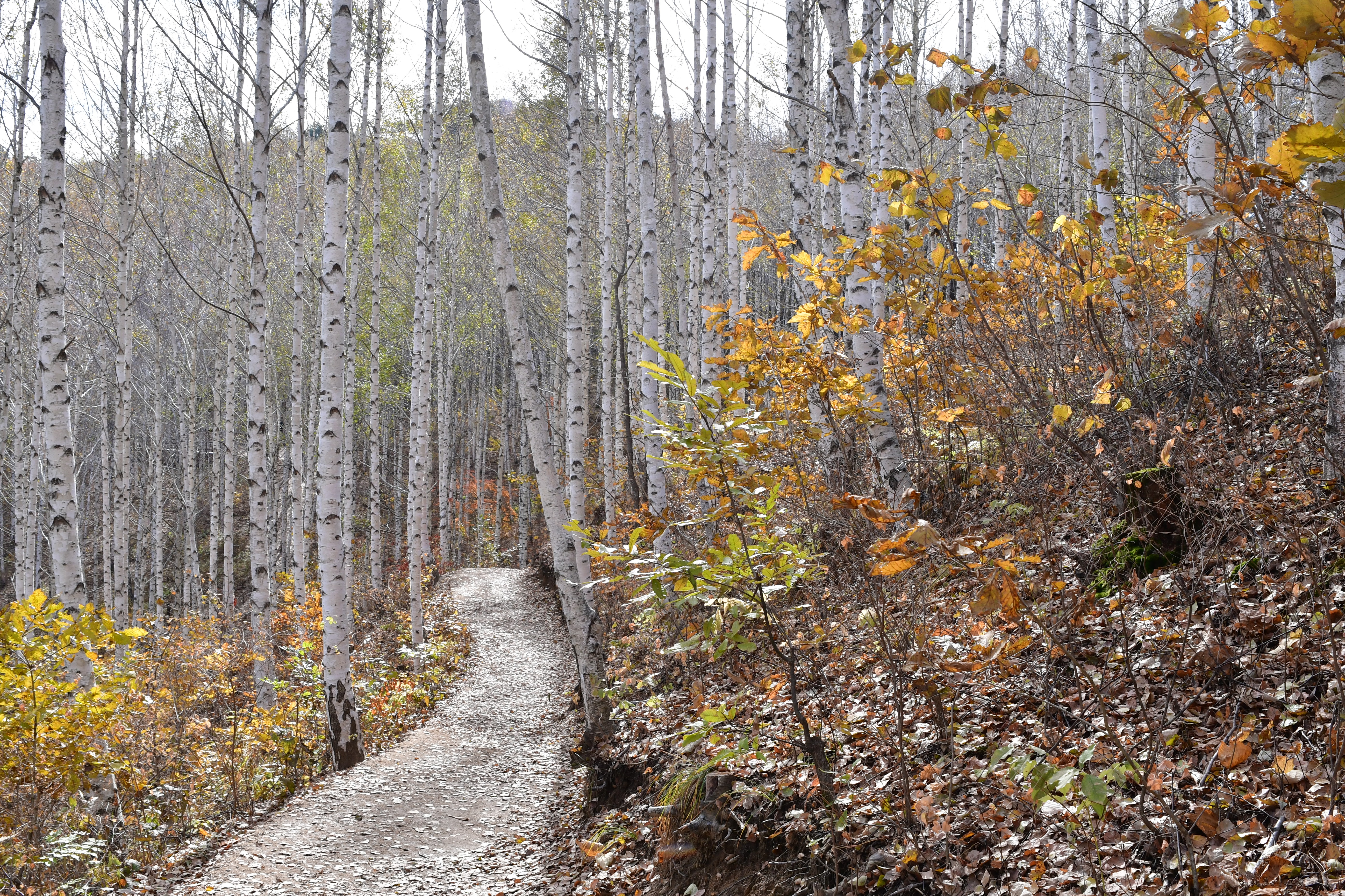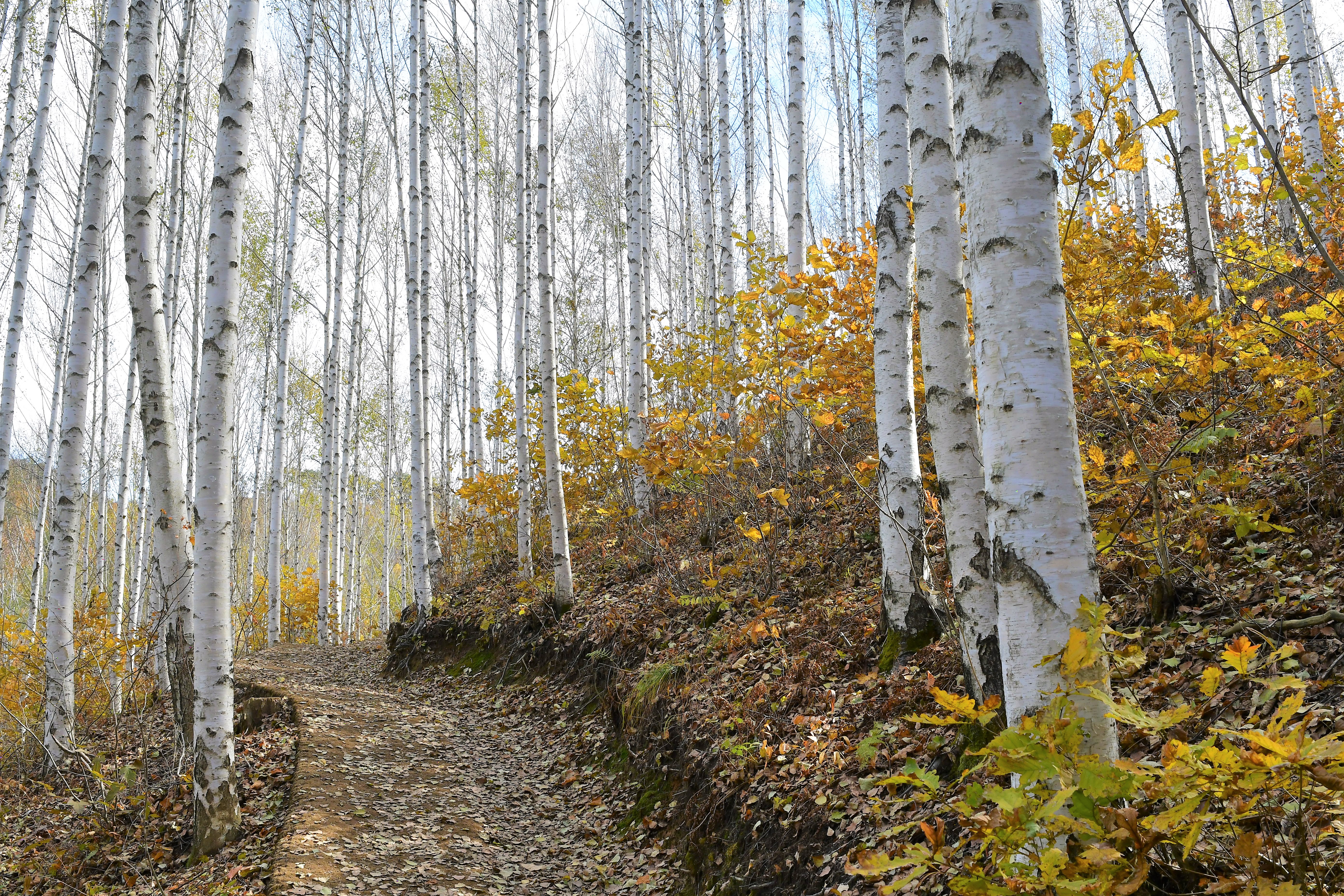 힌색의 자작나무,,, 그리고 듬성듬성의 나무들,,,